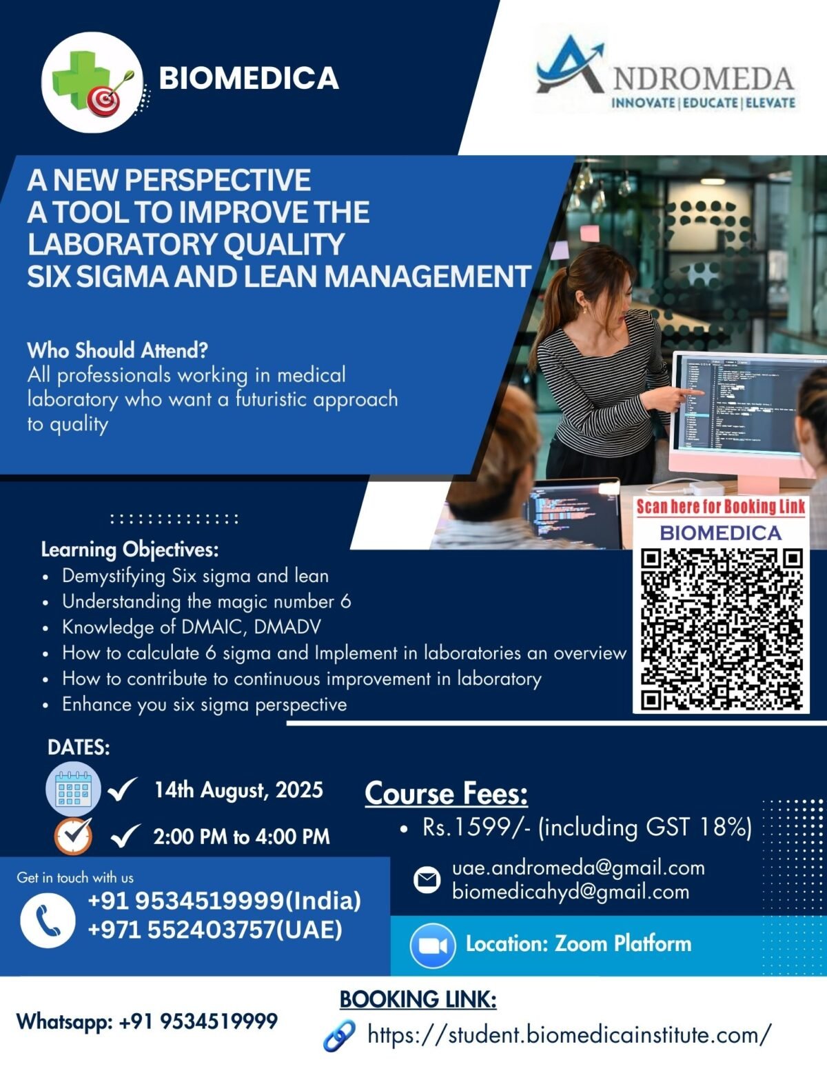 “Biomedica and Andromeda Announce Live Zoom Training: Six Sigma and Lean for Medical Laboratories” đź“… “Date”: 14th August, 2025đź•‘ “Time”: 2:00 PM – 4:00 PM (UAE Time)📍 “Online via Zoom”đź”— “Booking Link”: Register Now “Introduction” In the ever-evolving healthcare industry, laboratories stand at the core of accurate diagnosis, timely reporting, and reliable patient outcomes. But […]